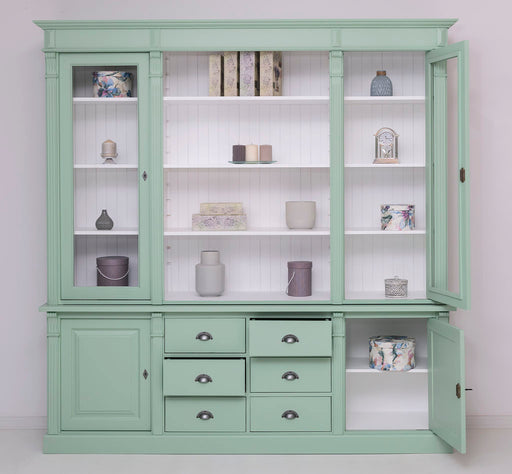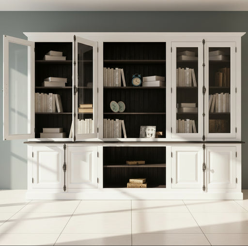 Jetzt Details anzeigenLandhaus Bücherschrank aus Massivholz | 4-türige Vitrine
