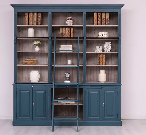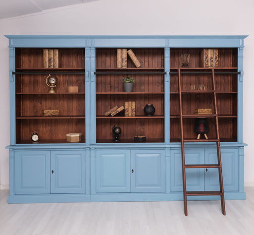 Jetzt Details anzeigenLandhaus Wohnwand aus Massivholz - Bibliotheksschrank - Bücherschrank mit Leiter