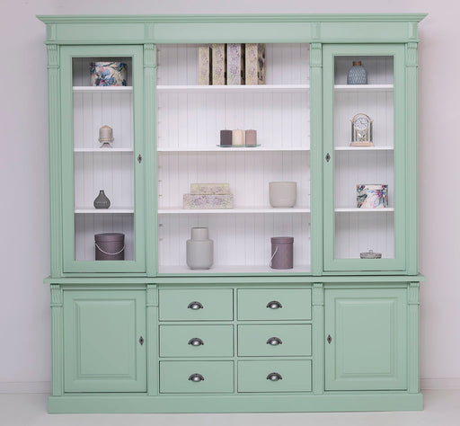Jetzt Details anzeigenLandhaus Wohnwand aus Massivholz | Vitrinen & Bibliotheksschrank | Bücherschrank mit 8 Türen