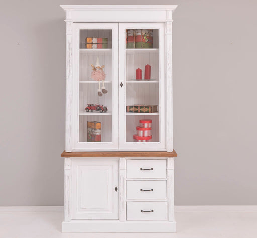 Jetzt Details anzeigenLandhaus Vitrinenschrank aus Massivholz - Vitrine mit Lamellentüren