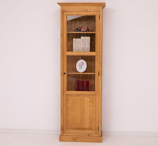 Jetzt Details anzeigenSchmaler Vitrinen- Schrank aus Massivholz mit verglasten Türen & 5 Einlegeböden