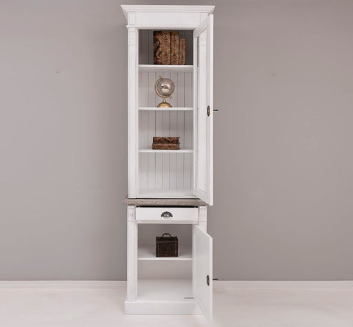 Jetzt Details anzeigenVitrinenschrank aus Massivholz mit Schublade und Glastür | in verschiedenen Farben