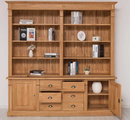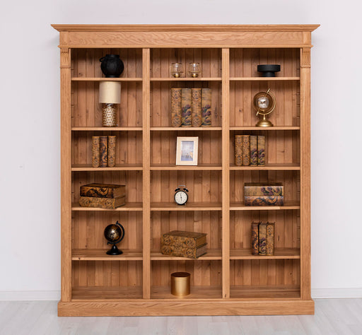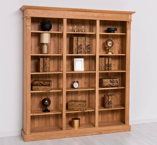 Jetzt Details anzeigenGroßes Bücherregal aus massiver Eiche mit verzierter Kranzleiste