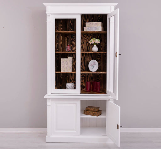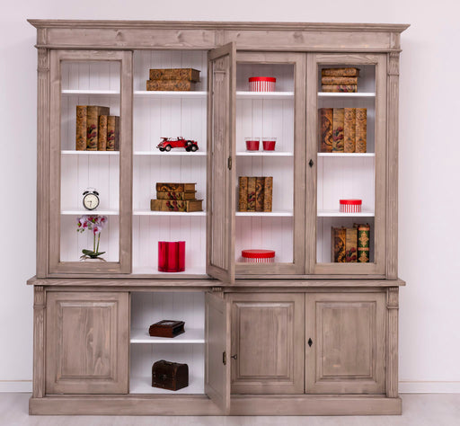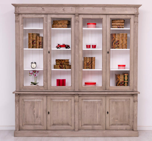Jetzt Details anzeigenLandhaus Bücherschrank aus Massivholz | 4-türige Vitrine