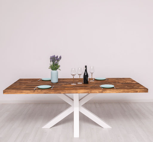 Jetzt Details anzeigenIndustrial Esstisch aus Massivholz mit zentralem X-Bein