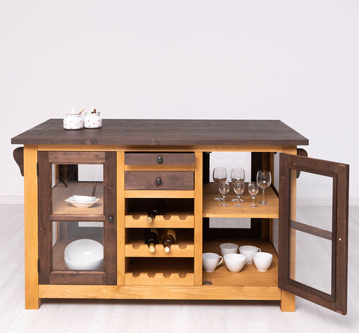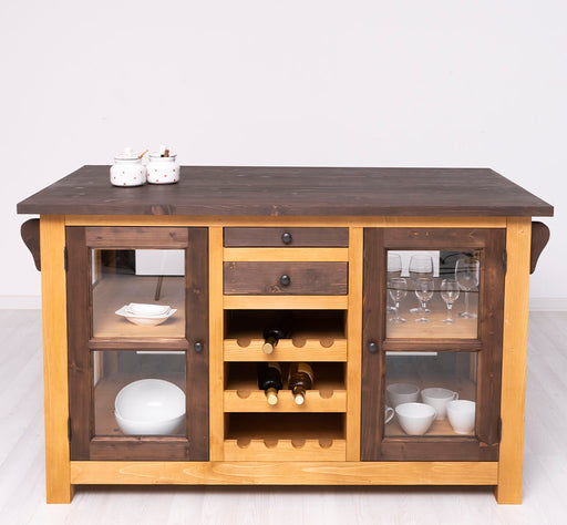 Jetzt Details anzeigenKücheninsel - Kochinsel aus Massivholz mit Weindisplay & verglasten Unterschränken