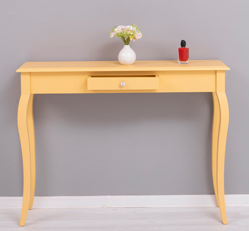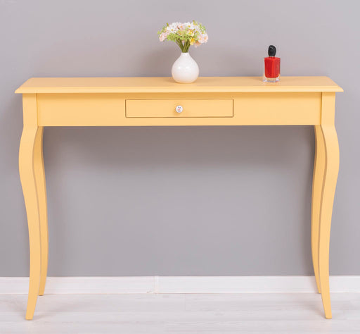 Jetzt Details anzeigenKonsolentisch aus Massivholz mit Schublade und geschwungenen Beinen