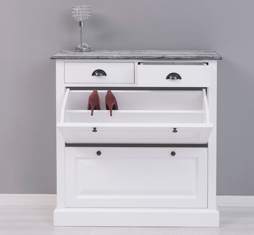 Jetzt Details anzeigenSchuhschrank aus Massivholz mit zwei Kippfächern - mit Holzkontrast