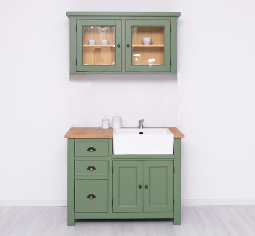 Jetzt Details anzeigenKleines Küchenset - Spültisch aus Massivholz mit Eichenplatte | Mit Spülbecken und Hängeschrank