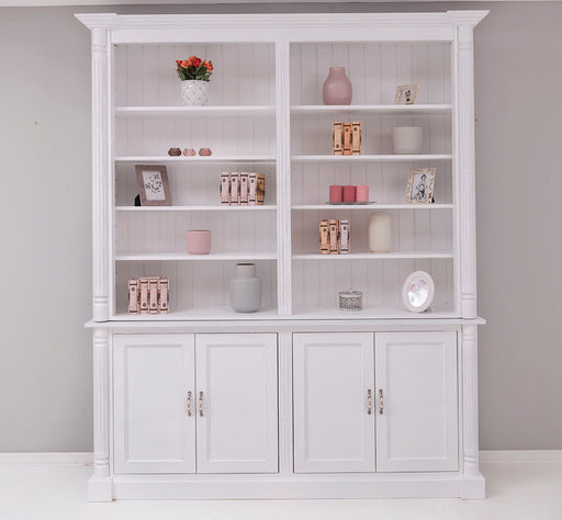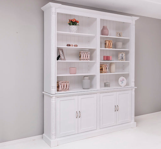 Jetzt Details anzeigenHoher Wohnzimmerschrank aus Massivholz - Bücherschrank mit 4 Türen - Porzellangriffe