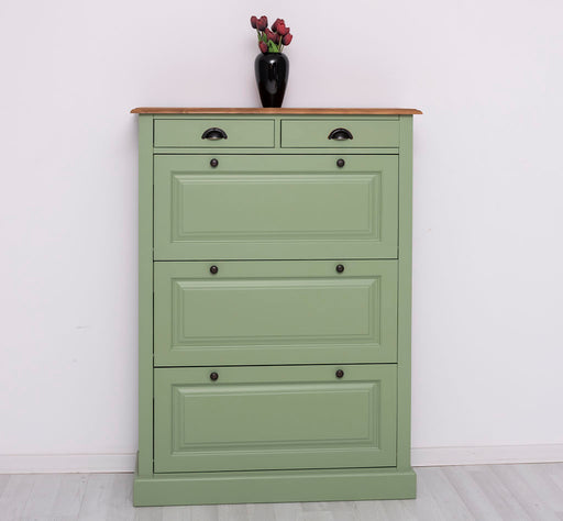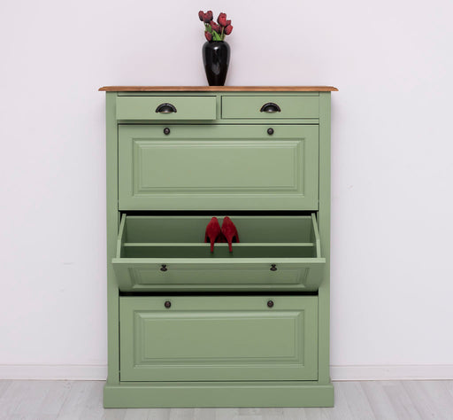 Jetzt Details anzeigenLandhaus Schuhschrank aus Massivholz mit zwei Kippfächern - in verschiedenen Farben