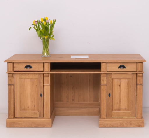 Jetzt Details anzeigenSchreibtisch aus massiver Eiche | Arbeitsplatz mit 2 Schubladen und 2 Türen