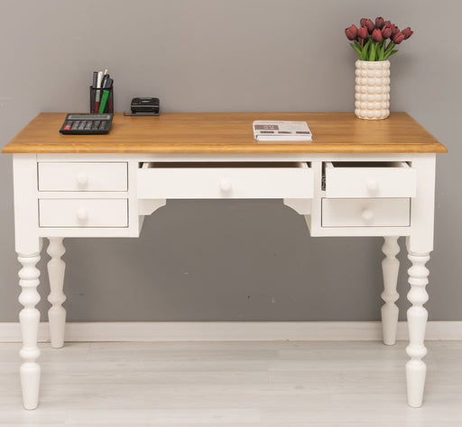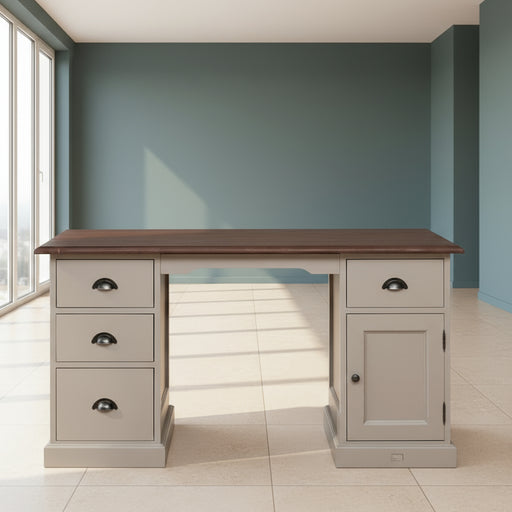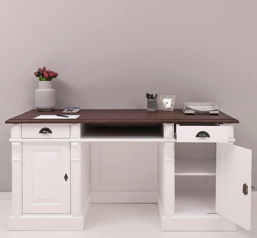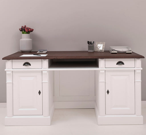 Schreibtisch aus Massivholz | Arbeitsplatz mit 2 Schubladen und 2 Türen