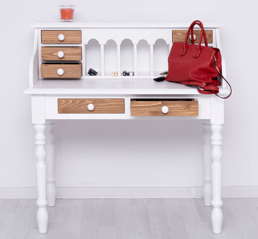 Jetzt Details anzeigenSekretär aus Massivholz mit gedrechselten Beinen | Schminktisch mit vielen Schubladen