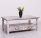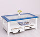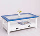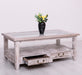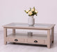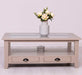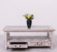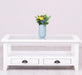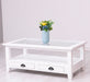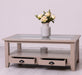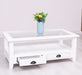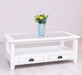 Glas-Couchtisch aus Massivholz mit zwei Schubladen