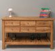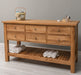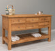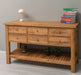 Großer Konsolentisch aus massiver Eiche mit 6 Schubladen und Regalboden
