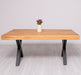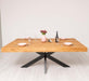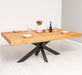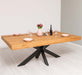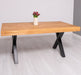 Industrial Esstisch mit dicker Tischplatte aus Eiche und verschiedenen Metallbeinen