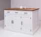 Große Kücheninsel aus Massivholz mit Platz für drei Barhocker