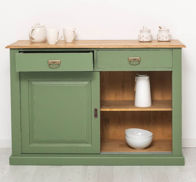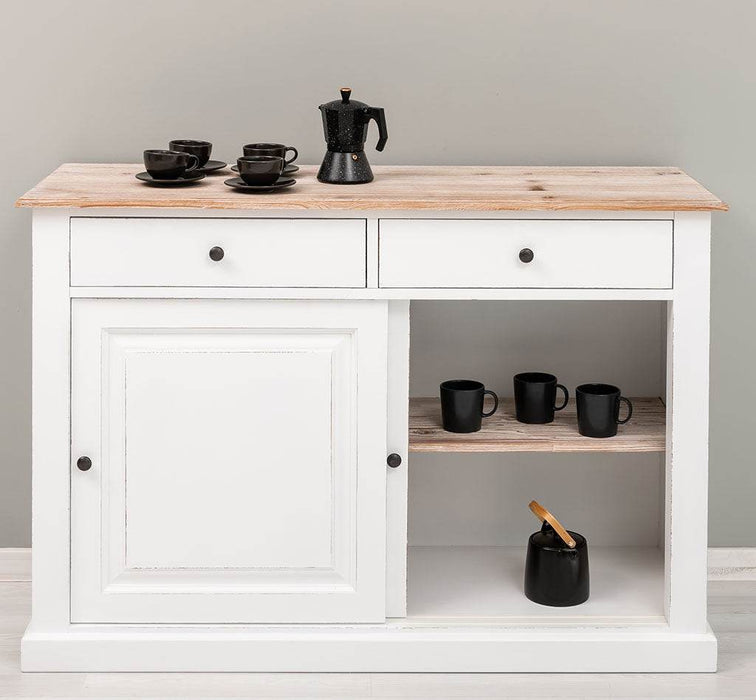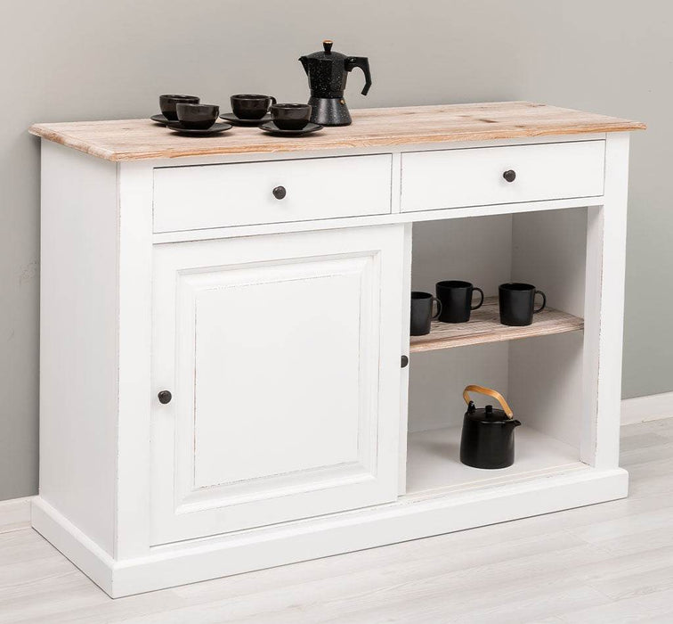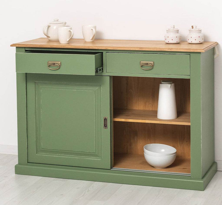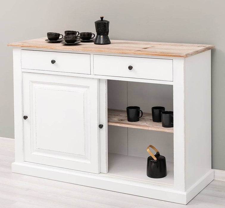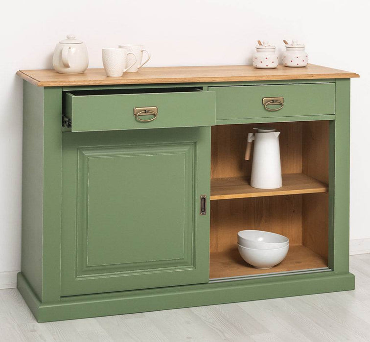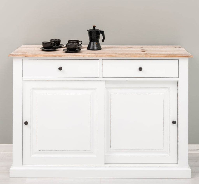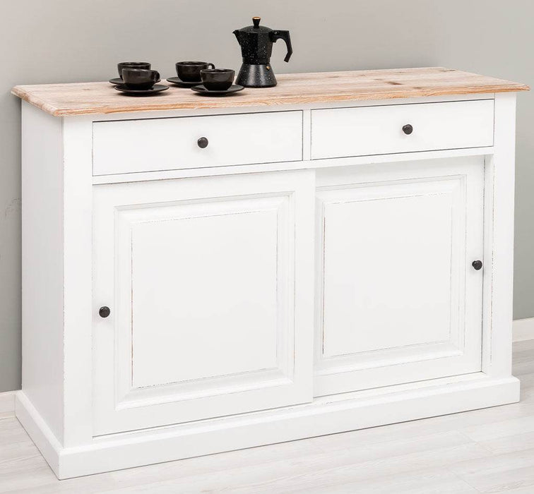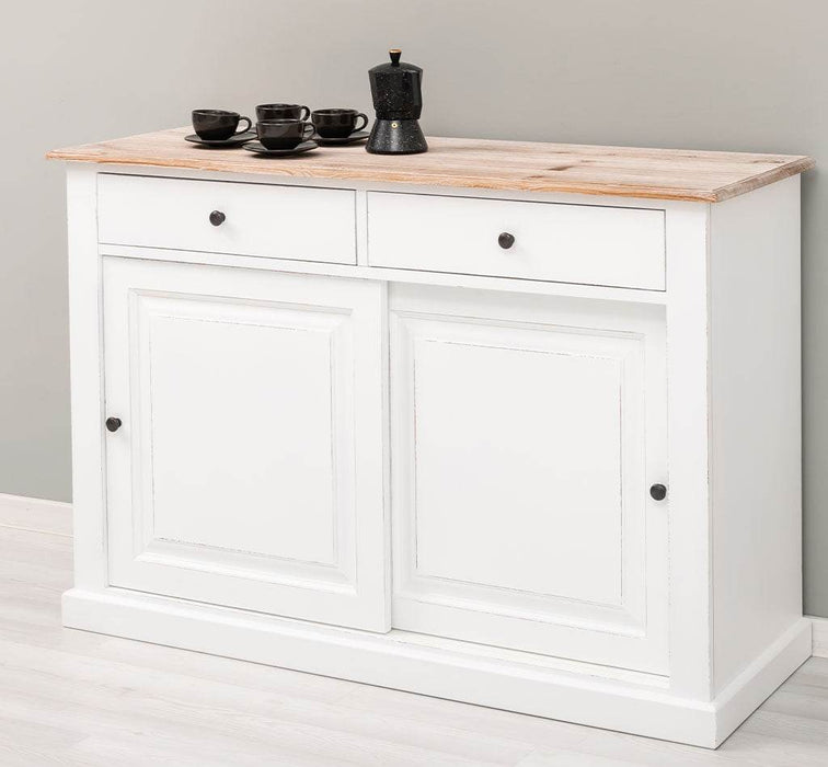 Zweitüriges Sideboard mit Schubladen aus Massivholz - Kommode mit Schiebetüren
